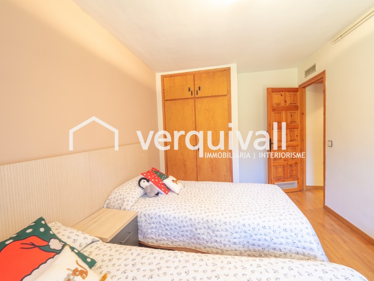 La terrassa és un espai molt agradable, per respirar aire pur i relaxar-te de l’estrès de la feina i de les aglomeracions de la ciutat. Aquesta terrassa té accés directe a la zona comunitària enjardinada. Totes les habitacions són exteriors i tenen armaris encastats. Gran saló menjador amb lar de foc, molt assolellat i lluminós. La cuina amplia amb espai per menjar.